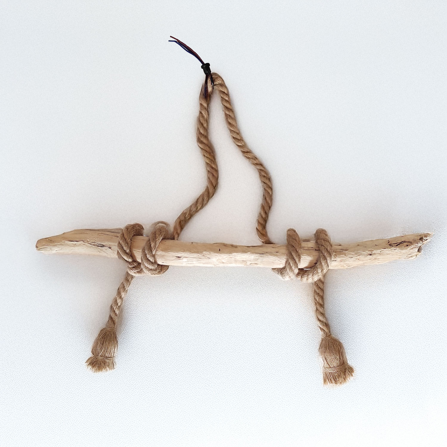 Il vous suffit d’enrouler les cordes autour du bois pour installer facilement votre lustre.